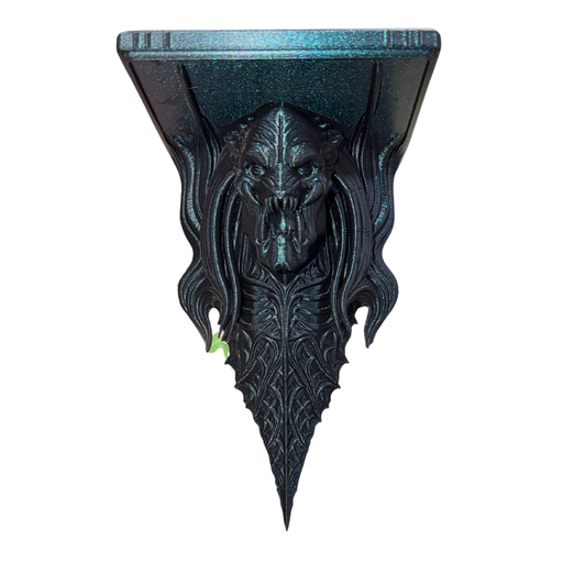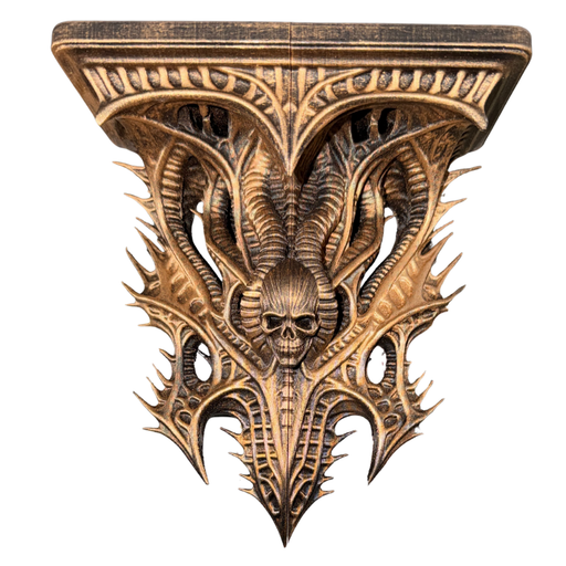 Upgrade your horror display with this Bronze Giger Inspired 3D Printed Wall Mounted Shelf, designed to combine striking sci-fi horror aesthetics wi...
